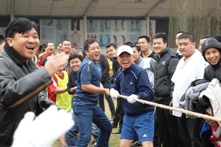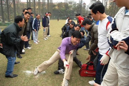 Với gương mặt mướt mồ hôi, các vận động viên của Cục Phục vụ Ngoại giao đoàn tỏ ra rất hồ hởi khi tham gia bộ môn kéo co và bóng đá. “Tôi rất vui vì được giao lưu với các anh, chị trong Bộ nhân dịp khai sân đầu năm của Công đoàn Bộ. Tôi thường xuyên đá bóng và lần này còn tham gia kéo co nữa. Các hoạt động giao lưu thể thao như thế này sẽ góp phần nâng cao thể lực cũng như tinh thần của mọi người…”, anh Nguyễn Văn Hải, Cục Phục vụ Ngoại giao đoàn chia sẻ.