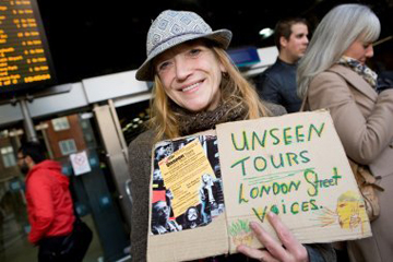Với tấm biển quảng cáo “Tour du lịch góc khuất” trước ngực, Hazel Wilding, 52 tuổi, vẫn thường đứng trước nhà ga xe lửa ở cầu London để mời gọi du khách tham gia hành trình của mình. Đó không phải là một cuộc cưỡi ngựa xem hoa, những người vô gia cư như bà đã mang tới cho du khách một góc nhìn mới mẻ về thành phố. Ở đây, họ được giải thích tường tận về cuộc sống của người vô gia cư, về các trung tâm tài chính và văn hóa đến mỗi chiếc ghế công viên, mỗi mái hiên và cả khu chợ London Borough…