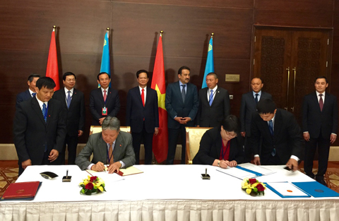 Sau khi kết thúc cuộc gặp làm việc, dưới sự chứng kiến của hai Thủ tướng, hai bên đã ký Biên bản trao đổi Văn kiện phê chuẩn Hiệp định tương trợ tư pháp giữa CHXHCN Việt Nam và CH Kazakhstan, Chương trình hợp tác giai đoạn 2015 -2017 giữa Bộ Tư pháp CHXHCN Việt Nam và Bộ Tư pháp Cộng hòa Kazakhstan, Thỏa thuận hợp tác Văn hóa giai đoạn 2015-2017 giữa Bộ Văn hóa Thể thao và Du lịch CHXHCN Việt Nam và Bộ Văn hóa Cộng hòa Kazakhstan.