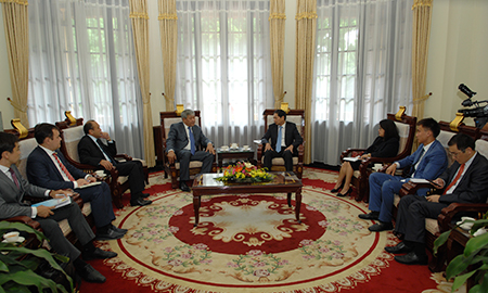 Tại buổi tiếp, hai bên khẳng định quan hệ hữu nghị truyền thống giữa Việt Nam và Kazakhstan ngày càng được củng cố và phát triển. Hai bên thường xuyên trao đổi đoàn các cấp mà mới đây nhất là cuối tháng Năm vừa qua, Thủ tướng Nguyễn Tấn Dũng đã dẫn đầu Đoàn đại biểu Việt Nam sang Kazakhstan dự Lễ ký kết Hiệp định Thương mại tự do giữa Việt Nam và Liên minh Kinh tế Á - Âu. Hai bên cho rằng, sự kiện này sẽ mở ra cơ hội mới, đầy triển vọng cho hai nước nói riêng, cũng như các nước thuộc Liên minh Kinh tế Á - Âu nói chung, đặc biệt là trong lĩnh vực kinh tế, thương mại và đầu tư.