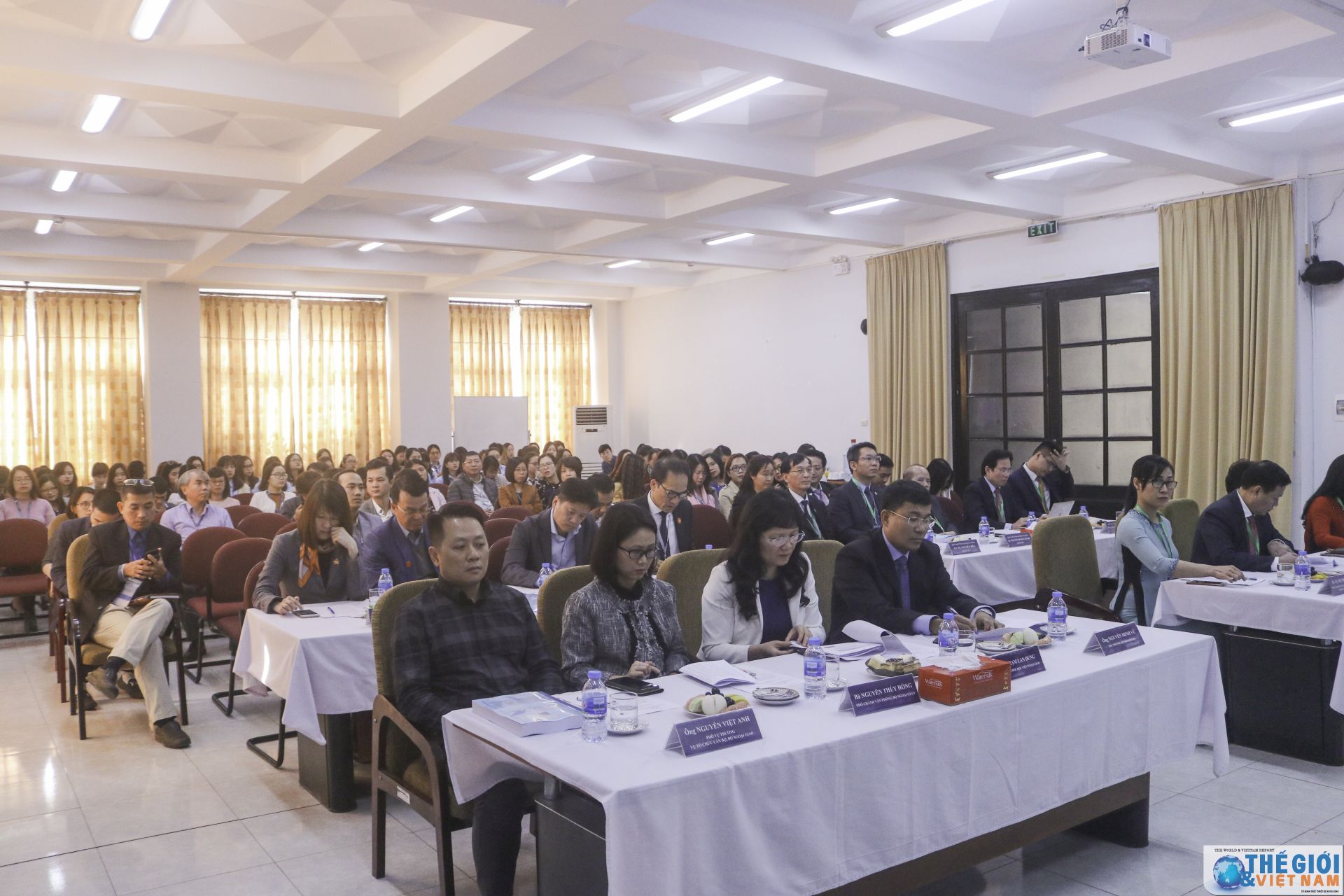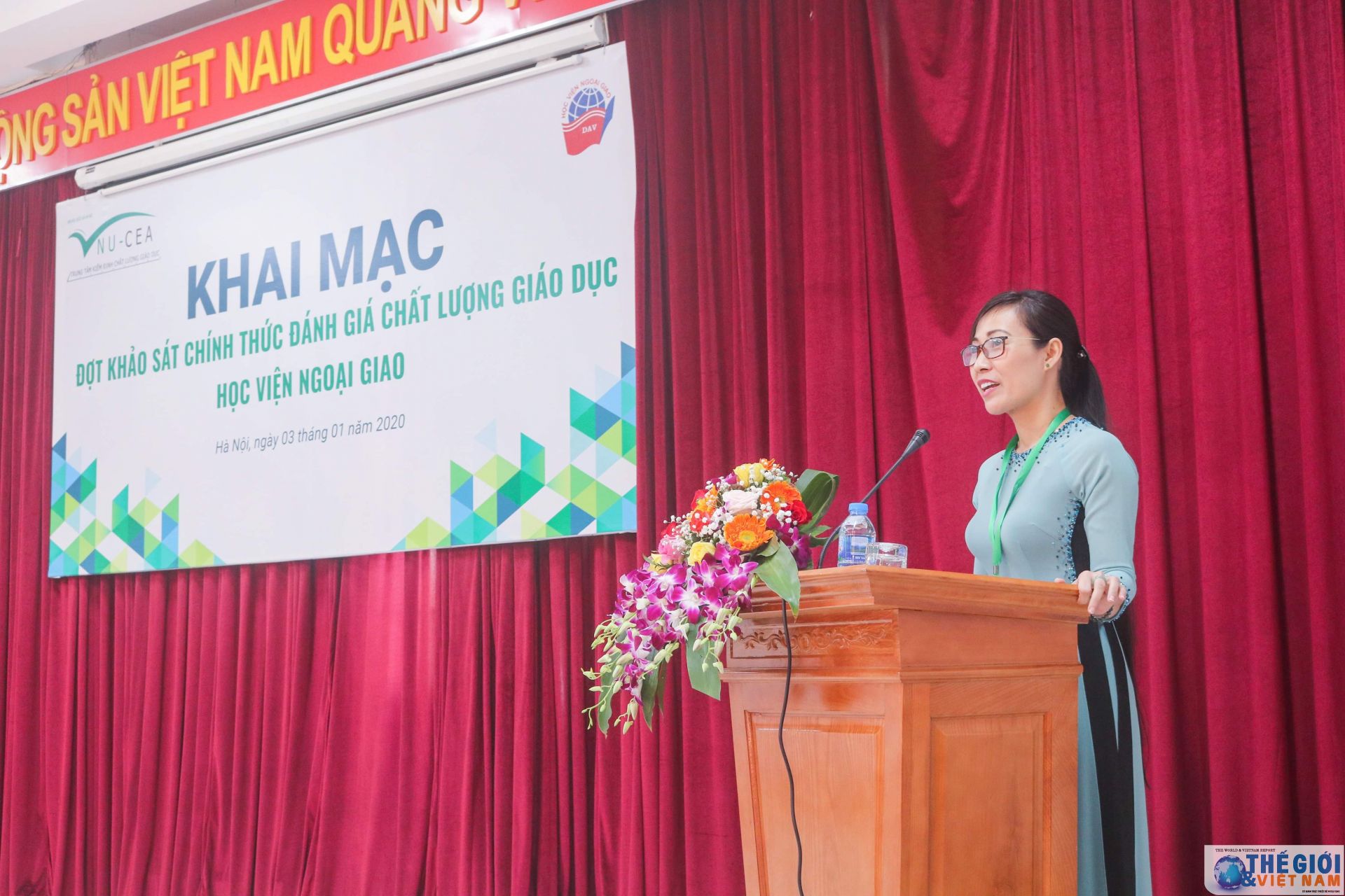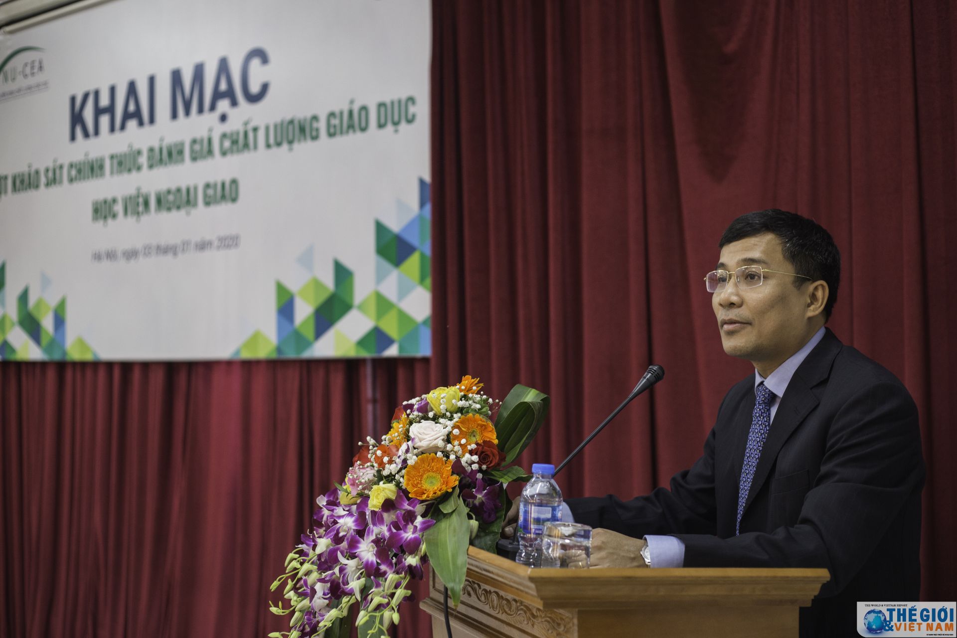 | Đoàn Chuyên gia Đánh giá ngoài, đại diện Lãnh đạo Bộ Ngoại giao và Học viện Ngoại giao tại buổi Lễ Khai mạc. (Ảnh: Tuyền Nguyễn, Nhân Tùng) |