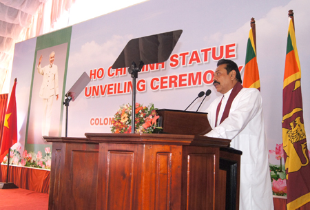 Phát biểu chào mừng tại buổi lễ, Tổng thống M. Rajapaksa ca ngợi cuộc đời và sự nghiệp hoạt động cách mạng vĩ đại của Chủ tịch Hồ Chí Minh - Người là vị anh hùng giải phóng dân tộc đã dẫn dắt nhân dân Việt Nam vượt qua hai cuộc kháng chiến trường kỳ và đi tới thống nhất đất nước; Người còn là nguồn cảm hứng, nguồn động viên to lớn đối với các dân tộc bị áp bức trên toàn thế giới đấu tranh vì độc lập dân tộc và hạnh phúc của nhân loại, và do đó Chủ tịch Hồ Chí Minh được cả thế giới ngưỡng mộ và tôn vinh, trong đó có nhân dân Sri Lanka. Tổng thống khẳng định Tượng đài Hồ Chí Minh được dựng tại Colombo sẽ là biểu tượng vĩnh cửu cho tình hữu nghị truyền thống và quan hệ tốt đẹp của nhân dân hai nước Sri Lanka và Việt Nam.