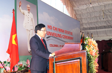 | Phó Thủ tướng, Bộ trưởng Ngoại giao Phạm Bình Minh phát biểu tại Lễ Khánh thành tượng đài Chủ tịch Hồ Chí Minh tại Sri Lanka. |