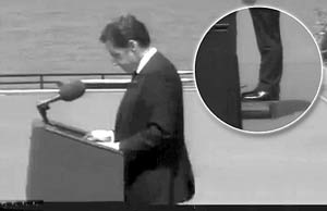 Với chiều cao 1,67m, Tổng thống Pháp Sarkozy phải đứng trên chiếc ghế dành riêng cho mình mỗi khi phát biểu.