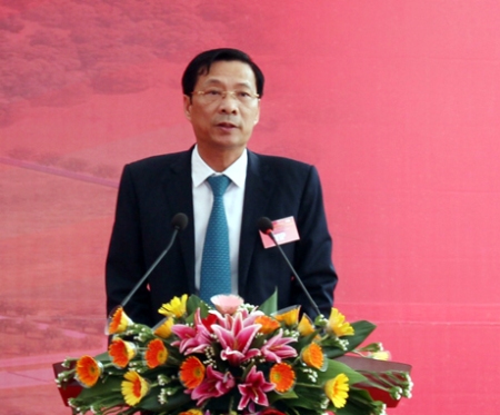 | Phó Thủ tướng Chính phủ Hoàng Trung Hải phát biểu tại lễ khởi công dự án. |