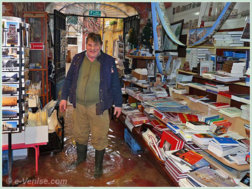 Có lẽ, đây là hiệu sách “dưới nước” duy nhất trên thế giới và mang nhiều nét đặc trưng của vùng Venice thơ mộng. Du khách khi đến đây sẽ thích thú khi thấy cửa hàng sách “Acqua Alta” với nơi trưng bày là một chiếc thuyền Gondola nguyên bản dài 11m, bồn tắm cũ và thùng gỗ. Cửa hàng sách này nằm trong khu Calle Longa Santa Maria Formosa của Venice, mở cửa hàng ngày từ 9 giờ sáng đến 8 giờ tối.