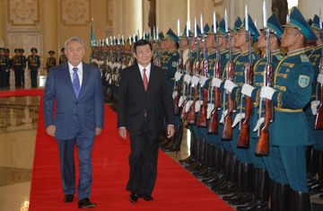 Tổng thống Kazakhstan nhiệt liệt chào mừng Chủ tịch nước Trương Tấn Sang lần đầu tiên sang thăm Kazakhstan, đánh giá chuyến thăm có ý nghĩa quan trọng trong việc tăng cường hơn nữa quan hệ hữu nghị truyền thống và hợp tác nhiều mặt giữa hai nước, đặc biệt trong bối cảnh hai nước long trọng kỷ niệm 20 năm thiết lập quan hệ ngoại giao.