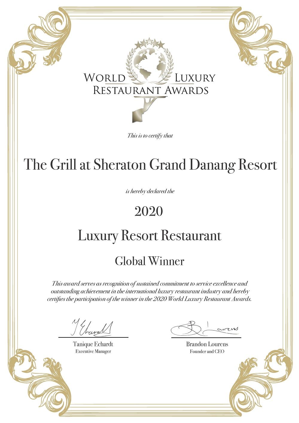 Được thành lập từ năm 2006 Giải thưởng World Luxury Hotel & World Luxury Restaurant Awards thuộc hệ thống giải thưởng uy tín bậc nhất thế giới trong lĩnh vực dịch vụ khách sạn và lữ hành. Cả hai giải thưởng được đánh giá là đỉnh cao thành tựu mà tất các nhà hàng, khách sạn và khu nghỉ dưỡng sang trọng toàn cầu vươn tới.