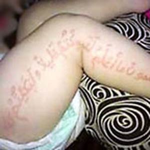 Bà Madina Iakubova, mẹ của bé Ali 9 tháng tuổi, kể lại rằng bẩm sinh trên cằm của bé Ali đã có chữ Allah (tên Thánh trong đạo Hồi) và trên chân là những chữ cái Ảrập riêng biệt. Dần dần, trong quá trình phát triển, trên cơ thể bé Ali hiện ra những bài nguyên vẹn trong Kinh Koran. Các giáo sĩ Hồi giáo địa phương cũng khẳng định điều đó.