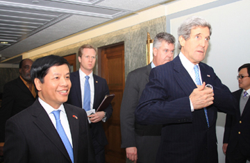 Ngoại trưởng John Kerry cho biết, trong chuyến thăm Việt Nam đầu tiên cuối năm 2013 trên cương vị Ngoại trưởng, ông nhìn thấy từ Việt Nam, đất nước và con người, những tiềm năng to lớn để hai nước tiếp tục mở rộng quan hệ.