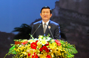 | Chủ tịch nước Trương Tấn Sang phát biểu tại lễ kỷ niệm. (Ảnh: Minh Châu/TG&VN)) |