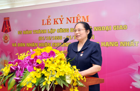 Phát biểu tại Lễ Kỷ niệm, bà Tào Thị Thanh Hương, Chủ tịch Công đoàn Bộ đã ôn lại lịch sử hình thành và phát triển của Công đoàn Bộ và nhấn mạnh, trải qua 65 năm với 27 kỳ Đại hội, Công đoàn Bộ đã không ngừng lớn mạnh và trưởng thành. Đến nay Công đoàn Bộ Ngoại giao là công đoàn cấp trên cơ sở, trực tiếp chỉ đạo 6 công đoàn cơ sở, 36 công đoàn bộ phận và hơn 4.000 đoàn viên.