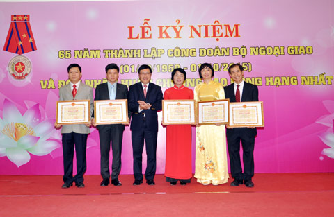 Tại Lễ kỷ niệm, thay mặt Lãnh đạo Đảng và Nhà nước, Phó Thủ tướng Chính phủ, Bộ trưởng Ngoại giao Phạm Bình Minh đã trao tặng Công đoàn Bộ Huân chương Lao động Hạng Nhất vì đã có những thành tích xuất sắc trong lao động từ năm 2010-2014.