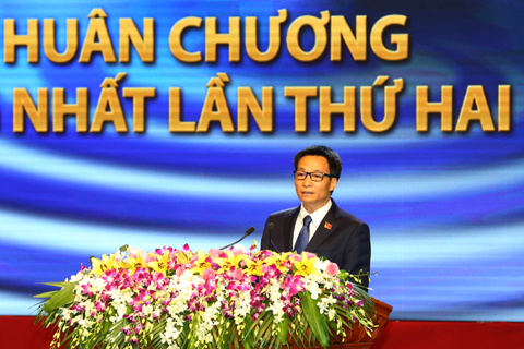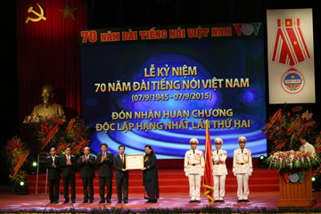 Nhân dịp này, thay mặt lãnh đạo Đảng, Nhà nước, Phó Chủ tịch Quốc hội Tòng Thị Phóng đã trao Huân chương Độc lập hạng Nhất lần thứ 2 cho Đài Tiếng nói Việt Nam; Phó Thủ tướng Vũ Đức Đam trao Huân chương Độc lập hạng Ba cho Tổng Giám đốc Đài Tiếng nói Việt Nam Nguyễn Đăng Tiến./.