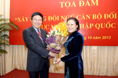 Cũng tại tọa đàm này , Bà Nguyễn Nguyệt Nga, Ủy viên BCHTW Hội Liên hiệp Phụ nữ Việt Nam, Phó Trưởng Ban Vì sự tiến bộ phụ nữ Bộ đã đề cập đến những vấn đề quan trọng với đối với cán bộ nữ đối ngoại. Bà nhấn mạnh rằng, cán bộ nữ ngoại giao cần giữ vững bản lĩnh người phụ nữ Việt Nam, có kiến thức rộng về mọi lĩnh vực và một nền tảng vững chắc về kỹ năng làm công tác đối ngoại... Ông Nguyễn Đức Hòa, Vụ trưởng Vụ Chính sách Đối ngoại và ông Nguyễn Đình Thao, Phó Giám đốc Học viện Ngoại giao, Thành viên Ban Vì sự tiến bộ phụ nữ Bộ cũng đã đưa ra một số định hướng, biện pháp tích cực để đào tạo đội ngũ cán bộ nữ ngoại giao thời hội nhập quốc tế.