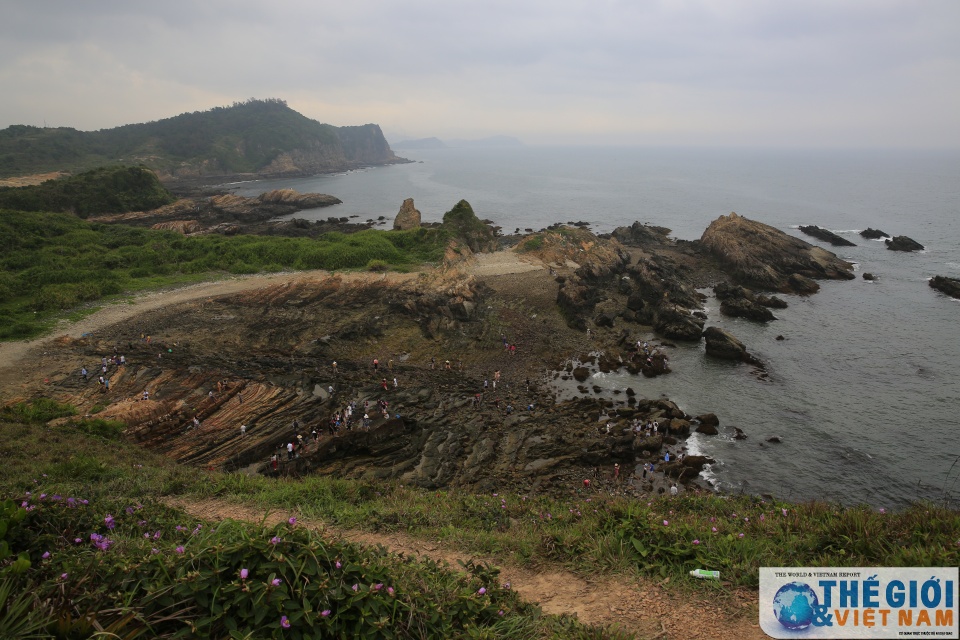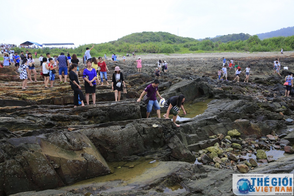 | Du khách bị thu hút bởi vẻ đẹp của biển và những phiến đá với hình thù lạ mắt. (Ảnh: Trung Hiếu) |