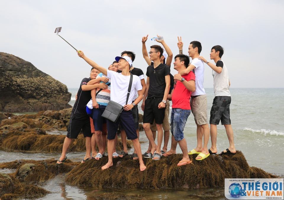 | Những mỏm đá vươn mình ra biển là nơi mà nhiều bạn trẻ chọn để ghi lại kỷ niệm tại đây. (Ảnh: Trung Hiếu) |