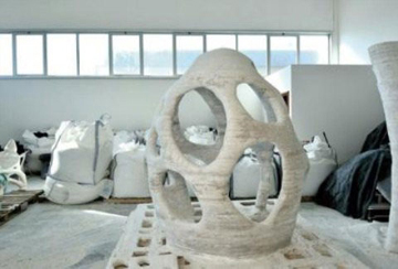 Trước đó, tháng 4/2010, nhà phát minh Enrico Dini người Italy đã phát triển chiếc máy in có thể "in" ra toàn bộ một ngôi nhà bằng cát và keo nhân tạo. Cơ chế hoạt động của máy là phun lần lượt lớp cát mỏng rồi đến lớp keo nhân tạo theo một thiết kế được vạch sẵn trong máy tính. Lớp keo biến cát thành một loại đá rắn chắc bằng cách xây dựng từng lớp từ dưới lên trên. Nhờ đó, máy in có thể tạo ra những bức tượng hoặc các tòa nhà cát. Máy in có thể di chuyển theo một xà nằm ngang và bốn cột dọc. Để tiến hành in một lớp, máy in dịch chuyển lên trên khoảng 5 đến 10 mm.