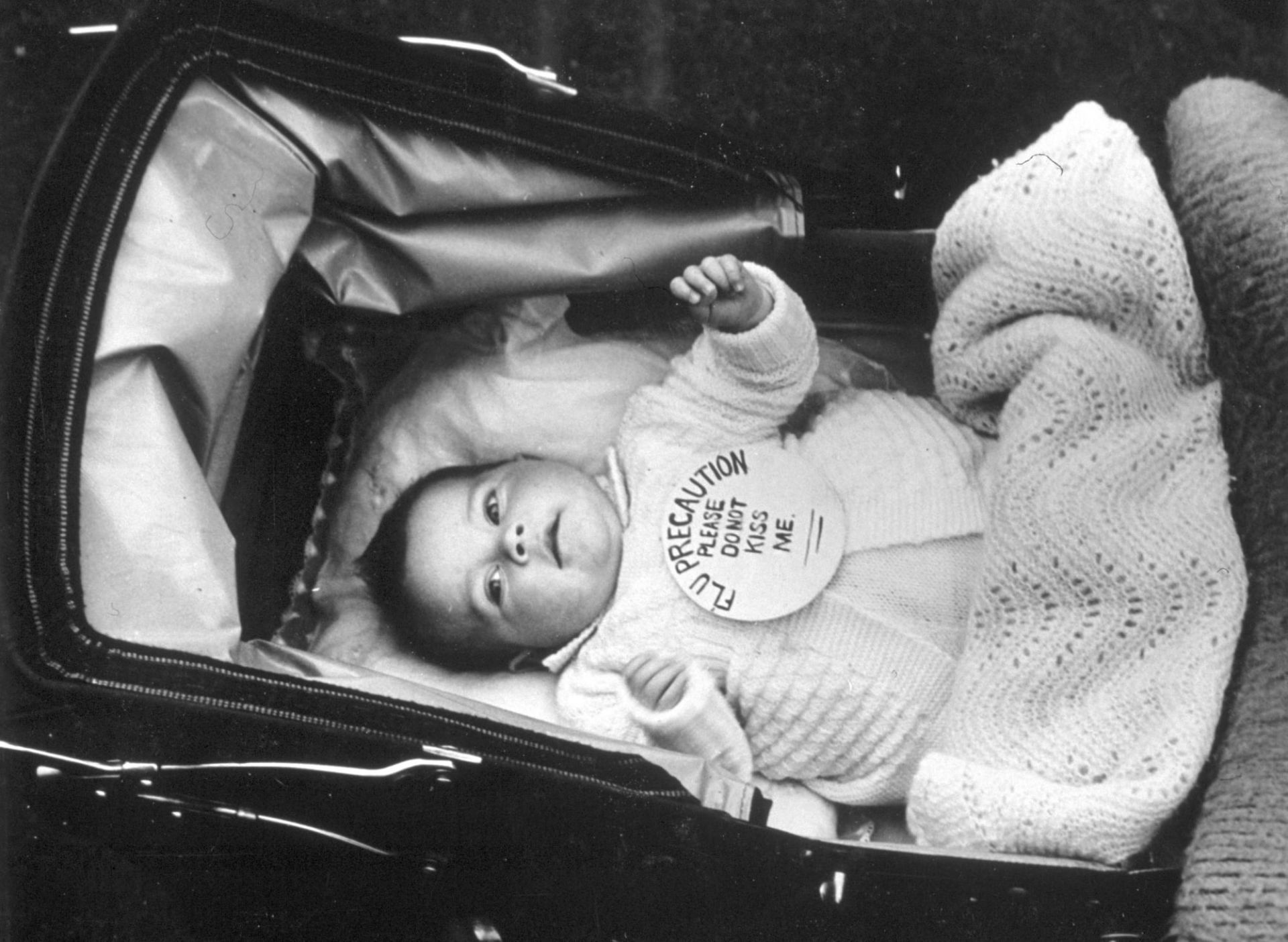 | Vẫn là lời nhắc nhở quen thuộc của các bậc cha mẹ "Xin đừng hôn bé". Bức ảnh được chụp năm 1939. (Nguồn: Getty Images) |