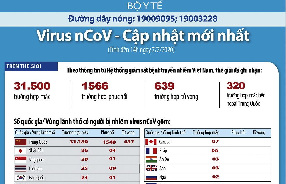 | Cập nhật 14h00 ngày 7/2: 31.500 người nhiễm virus corona, Trung Quốc điều tra vụ bác sỹ đầu tiên cảnh báo dịch tử vong TGVN. Dịch viêm đường hô hấp cấp do chủng mới của virus corona (nCoV) được phát hiện lần đầu tiên tại thành phố Vũ Hán, ... |