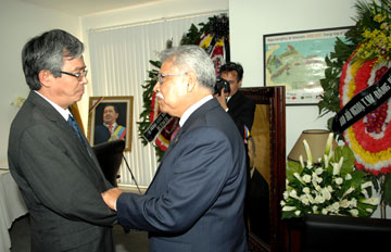 | Thứ trưởng Phạm Quang Vinh chia buồn với Đại sứ Venezuela tại Việt Nam. (Ảnh: Minh Châu/TG&VN) |