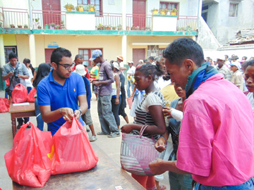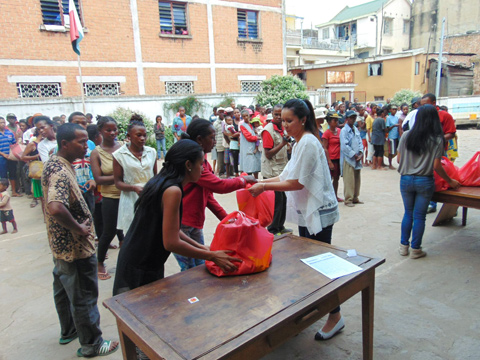 | Phát hàng cứu trợ của Lãnh sự danh dự Việt Nam tại Madagascar. |
