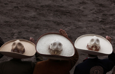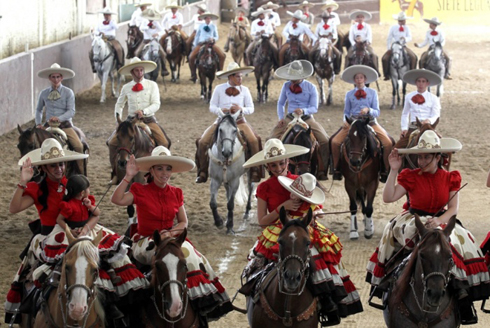 Những tay đua chào cờ trong ngày lễ Chareada ở Thành phố Mexico. Ảnh: Marco Ugarte/AP.