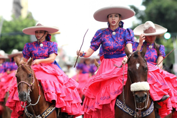| Phụ nữ mặc giống như Addelitas-tên của nhóm người phụ nữ ra trận chiến đấu cùng chồng đầu thế kỷ 20-trong cuộc diễu hành ở Guadalajara, Jalisco. |