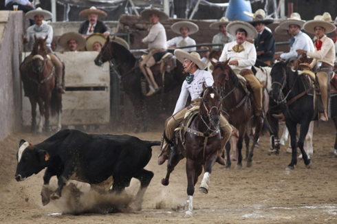 Biểu diễn quăng dây lasso cả khi cưỡi ngựa ở Thành phố Mexico. Ảnh: Marco Ugarte/AP.