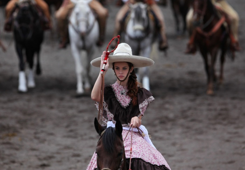 Một phụ nữ trẻ cưỡi ngựa trong một bài biểu diễn ở Mexico. Ảnh: Marco Ugarte/AP.