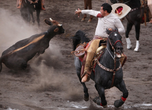 Một nhóm những tay đua truyền thống trình diễn suertes (một màn biểu diễn kỹ năng) trên lưng ngựa trong lễ hội ở Guadalajara. Ảnh: Ulises Ruiz Basurto/EPA.