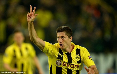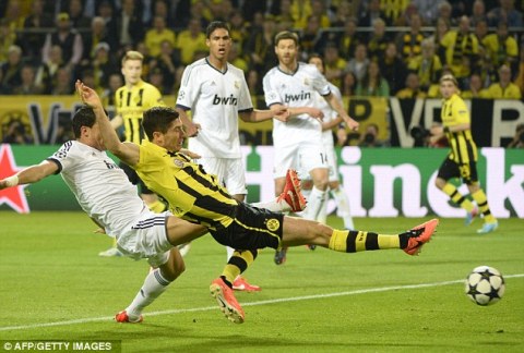 Tuy nhiên, Dortmund cũng chẳng phải hối tiếc quá lâu sau pha bóng nguy hiểm đầu tiên. Chỉ sau đó đúng 1 phút, Lewandowski đã ghi bàn thắng mở tỷ số 1-0 cho đội chủ nhà. Xuất phát từ cánh trái của Dortmund, Goetze đi bóng kỹ thuật, loại bỏ sự đeo bám của Ramos, tạt bóng chính xác cho Lewandowski băng vào đệm bóng cận thành tung lưới Diego Lopez.