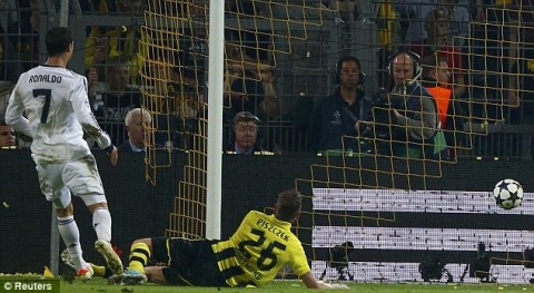 Phút 23, Real được hưởng quả đá phạt cách khu vực 16m50 khoảng 30m. Ronaldo đã sút thẳng vào khung thành của Dortmund nhưng không đủ khó để đánh bại Weidenfeller.