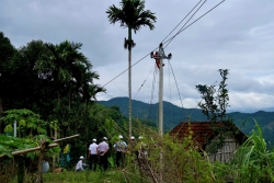 | Xí nghiệp lưới điện cao thế Gia Lai khẩn trương khắc phục sự cố lưới điện sau bão số 13. (Nguồn: PC Gia Lai) |