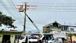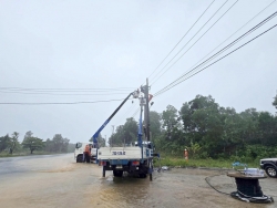 | Tăng cường kiểm tra hệ thống điện cho người dân vùng sâu trong mùa mưa bão. (Nguồn: PC Quảng Ngãi) |
