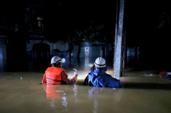 | Công ty Điện lực Huế kịp thời ứng phó mưa lũ lịch sử, hỗ trợ người dân di dời đến nơi an toàn. Trong ảnh, kiểm tra các tuyến đường dây, trạm biến áp. (Nguồn: PC Huế) |