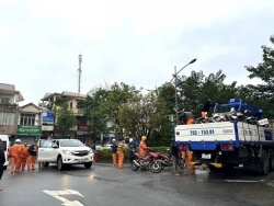 | Đội quản lý Điện A Lưới phối hợp ngành điện tỉnh Sê Kông (Lào) khắc phục thiên tai, kịp thời khôi phục cấp điện trở lại. (Nguồn: PC Huế) |