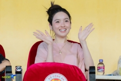 Tối 4/4, Doãn Hải My và Chu Thanh Huyền mặc giản dị khi đến sân Hàng Đẫy cổ vũ ông xã thi đấu trong trận ...