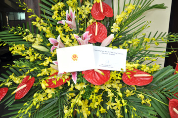 | Bộ trưởng Ngoại giao Phạm Bình Minh gửi lẵng hoa và Thiếp Chúc mừng Báo TG&VN nhân dịp kỷ niệm 88 năm ngày Báo chí cách mạng Việt Nam. |
