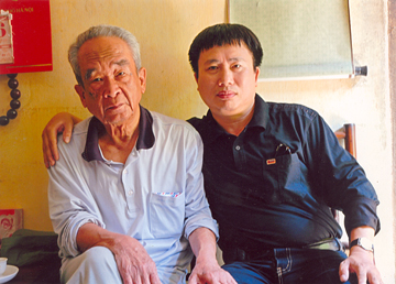 | Nhà thư pháp Nguyễn Văn Bách và tác giả. |