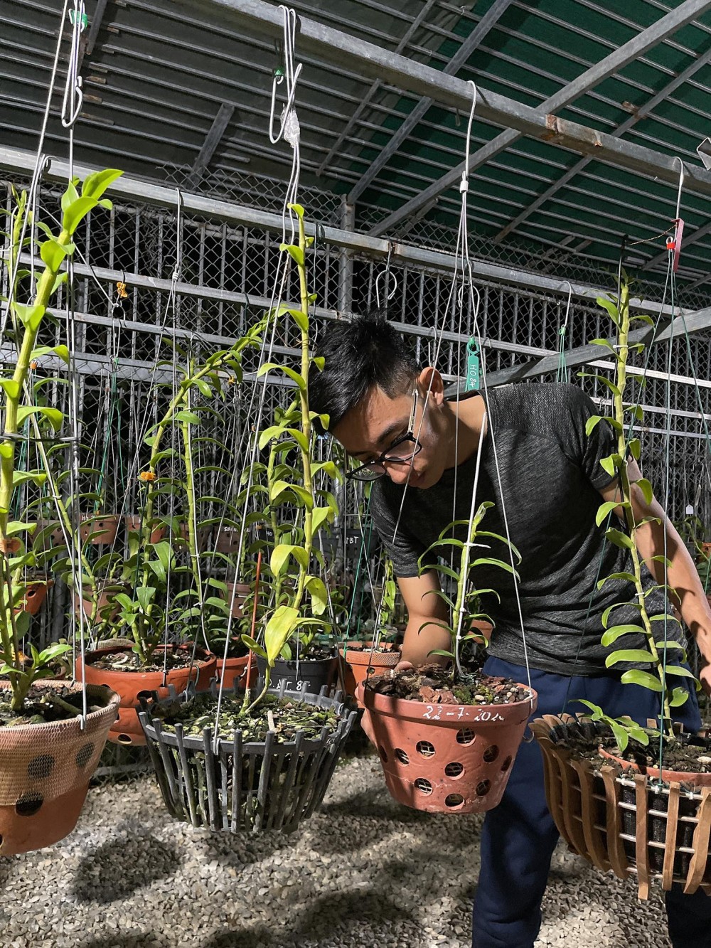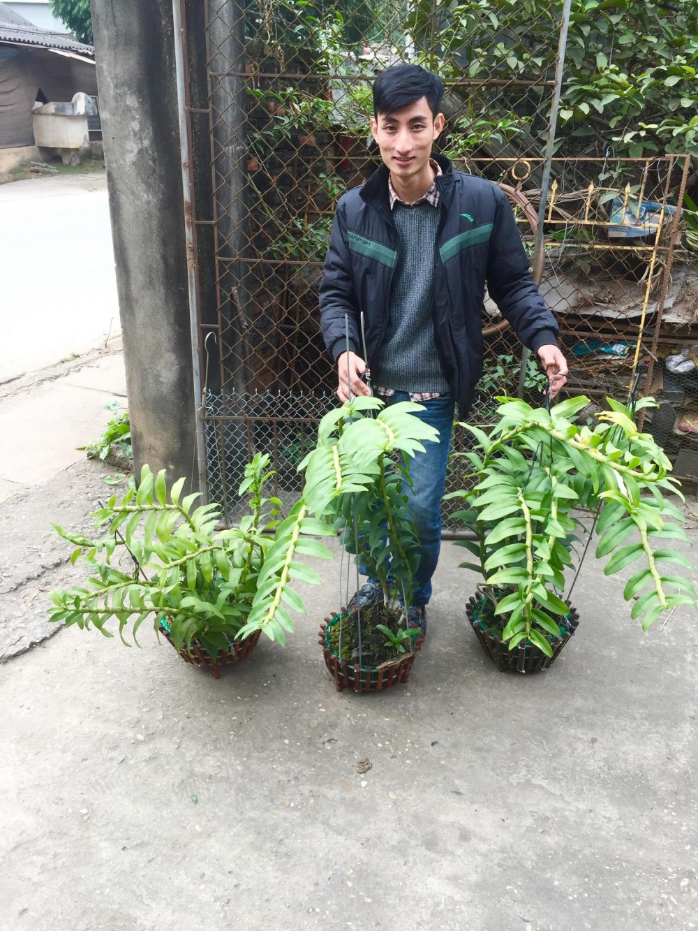 | Louis Đức Trung cho biết hiện anh có khoảng 2.500 giò Phi Điệp và khoảng 100 chậu Lan Kiếm. |