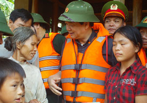 | Thủ tướng Nguyễn Tấn Dũng đã trực tiếp thị sát các địa phương vũng lũ và chỉ đạo không được để người dân nào bị đói. |