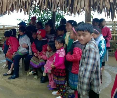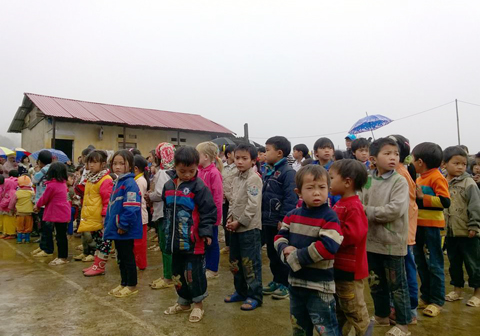 | Những em học sinh tại trường tiểu học Sàng Ma Sáo mặc dù thời tiết dưới 10 độ C nhưng các em ăn mặc phong phanh và gần như không em nào đi tất chân. |