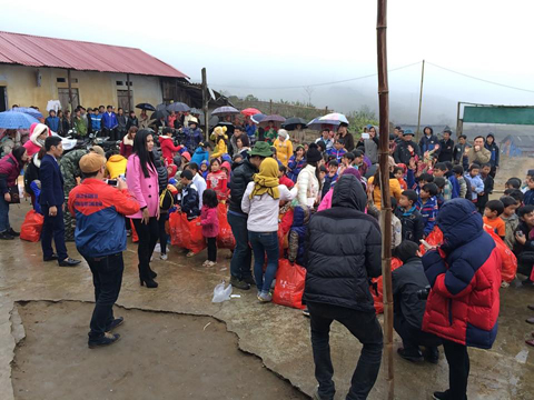 Hàng trăm xuất quà được trao tận tay những em học sinh nghèo, những hộ gia đình khó khăn và người có công. Mặc dù thời tiết xấu, mưa lạnh kéo dài nhưng đoàn tình nguyện vẫn cố gắng đi đến những điểm trường hẻo lánh nhất trong huyện, những thôn, bản mà vẫn chưa có ánh sáng đèn điện và đường xá chưa được tu sửa.