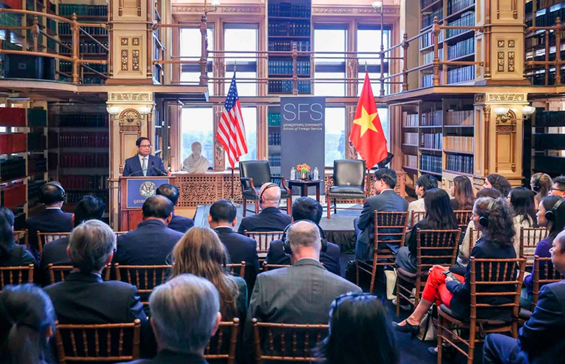 Bên cạnh đó cũng có rất nhiều loại công nghệ quan trọng khác nữa như công nghệ tự động hóa, công nghệ sinh học, công nghệ y học hay công nghệ về hàng không vũ trụ… Vấn đề hiện tại mà chúng tôi đang giải quyết là tập trung vào thu hút nguồn lực, đầu tư, tài chính, công nghệ và sự quan tâm đối với Việt Nam. Không chỉ là sự quan tâm thể hiện trên lời nói và mà phải có cam kết như cam kết về đầu tư, cam kết về hợp tác với các doanh nghiệp Việt Nam, cam kết để đưa Việt Nam có vị trí trên bản đồ công nghệ thế giới. Đó là những điều chúng tôi đang thúc đẩy và làm rõ từ chính sách đến cụ thể hóa chính sách. Tại Khai mạc Hội nghị Ngoại giao 32 vừa qua, Tổng Bí thư Nguyễn Phú Trọng đã nói về các chuyến thăm quan trọng vừa qua của Tổng thống Mỹ Joe Biden và Chủ tịch Trung Quốc Tập Cận Bình, đồng thời nhấn mạnh rằng không chỉ là những nghi lễ xã giao thông thường, sự thân tình của cả Tổng thống Mỹ và Chủ tịch Trung Quốc cho thấy Việt Nam đã chạm tới trái tim của họ. “Chạm đến trái tim” phải chăng là ở sự chân thành và sự yêu chuộng hòa bình, khao khát vươn lên? Tôi nghĩ rằng điều quan trọng nhất là Việt Nam đã thể hiện được sự chân thành. Ví dụ như tại cuộc gặp của Thủ tướng Chính phủ Phạm Minh Chính với lãnh đạo của công ty Nvidia (hãng sản xuất chip lớn nhất thế giới) nhân chuyến thăm Mỹ tháng 9/2023, Thủ tướng đã chia sẻ rất thật rằng Việt Nam đang trong quá trình phát triển và Việt Nam khát khao muốn có tên của mình trên bản đồ công nghệ thế giới. Sự khao khát này là có thực. Việt Nam không chỉ khao khát mà Việt Nam còn có tiềm lực, có cố gắng. Con người Việt Nam thông minh, cần cù, rất giỏi các môn khoa học tự nhiên và con người Việt Nam học về công nghệ rất nhanh vì chỉ trong vòng hơn 20 năm, từ một nước mới bắt đầu xuất khẩu phần mềm thì hiện nay Việt Nam đã đứng thứ 2 trên thế giới về xuất khẩu phần mềm, chỉ sau Ấn Độ. Hiện nay Việt Nam có hơn một triệu kỹ sư công nghệ và cũng chỉ sau Ấn Độ. Đó là minh chứng cho câu chuyện chúng ta không chỉ có khao khát mà còn có thực lực. Vì vậy, chúng ta cần một cú hích ở bên ngoài, đó là công nghệ và kinh nghiệm cũng như sự trợ giúp của Nvidia. Qua trao đổi của Thủ tướng, Lãnh đạo Nvidia khi đó thấy được mong muốn và thực lực của Việt Nam, đồng thời họ thấy rằng việc đầu tư vào Việt Nam không chỉ giúp ích cho riêng Việt Nam mà còn có lợi cho Nvidia. Chính sự công tâm và chân thành của Việt Nam mà cụ thể là của chính Thủ tướng Phạm Minh Chính đã chạm đến trái tim của họ. Ngay lập tức, họ đã có những quyết sách đáp ứng được các yêu cầu của chúng ta.