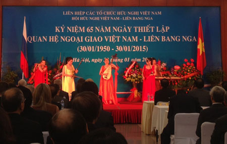 Phát biểu tại đây, ông Đào Trọng Thi, Ủy viên Ban chấp hành Trung ương Đảng, Chủ tịch Hội hữu nghị Việt Nam- Liên bang Nga khẳng định, 65 năm qua, kể từ khi hai nước thiết lập quan hệ ngoại giao, mối quan hệ song phương đã phát triển tốt đẹp cả về bề rộng lẫn chiều sâu trên mọi lĩnh vực, từ chính trị đến kinh tế- thương mại đầu tư. Hai nước đã thiết lập cơ chế đối thoại chiến lược thường kỳ, trao đổi đoàn cấp cao, các cuộc tiếp xúc giữa lãnh đạo hai nước để trao đổi những vấn đề an ninh chính trị cùng quan tâm, thường xuyên phối hợp chặt chẽ trên các diễn đàn quốc tế và khu vực. Bên cạnh đó, hợp tác song phương trong các lĩnh vực kinh tế- thương mại, năng lượng, an ninh quốc phòng, giáo dục đào tạo đang phát triển tích cực, đạt được những kết quả quan trọng. Kim ngạch song phương từ mức 300 đến 400 triệu USD trong những năm 1990, đạt gần 4 tỉ USD vào năm 2013.