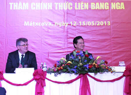 Quan hệ hai nước Việt Nam và Liên bang Nga đang phát triển rất tốt đẹp trên mọi lĩnh vực từ chính trị- ngoại giao đến kinh tế thương mại và du lịch. Thủ tướng nhấn mạnh sự ủng hộ và chia sẻ quan điểm lẫn nhau của Việt Nam và Nga trên các diễn đàn quốc tế như Liên hợp quốc, ASEM, APEC… cho thấy sự nhất trí cao về những vấn đề quốc tế giữa hai nước. Việc trao đổi thương mại tăng trên 30% trong năm 2012 và sự gia tăng đến 130% số lượng khách Nga đến Việt Nam cho thấy Việt Nam là một thị trường rất tiềm năng trên nhiều khía cạnh và đặc biệt quan hệ hợp tác trong các lĩnh vực dầu khí, điện nguyên tử đem lại hy vọng về sự ổn định cho ngành năng lượng Việt Nam. Những thông tin mà Thủ tướng phát biểu được bà con chăm chú lắng nghe và cảm thấy lạc quan hơn về triển vọng mối quan hệ hai nước.