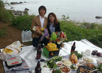 | Tác giả (trái) trong một bữa tiệc ngoài trời ở Hàn Quốc. |