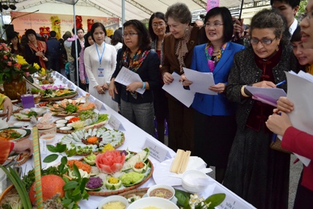 | Ban Tổ chức chấm điểm các món ăn Việt Nam. |