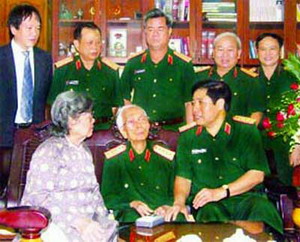 Bất ngờ và xúc động, Đại tướng Phùng Quang Thanh lần lượt giới thiệu từng người với “Anh Cả”. Đại tướng Võ Nguyên Giáp thân ái bắt tay mọi người rồi cầm tay Đại tướng Phùng Quang Thanh, nhắn nhủ: “Sinh nhật của tôi, được các đồng chí đến thăm thế này là quý lắm. Bây giờ tôi tuổi đã cao, tình hình đất nước, quân đội có theo dõi đầy đủ nhưng cũng không phải lúc nào cũng cập nhật được".